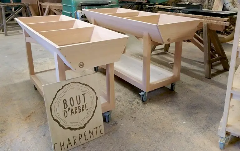 Piètement sur roulettes, plateaux en peuplier, séparateurs ou rangement dessous tout est possible!!