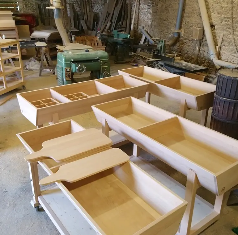 Depuis 2021 je me suis spécialisé dans la fabrication de pétrin manuel. Majoritairement j’utilise du hêtre premier choix.